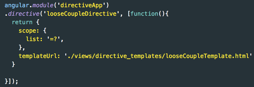 Loosely coupled directives have an isolated scope, but you add properties to the isolate scope from the directive's parent scope