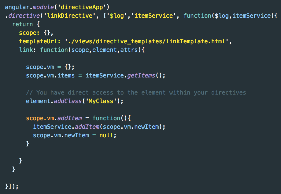What is the link method used for in a directive?