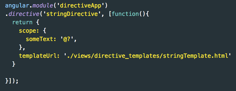 The use of @? means you will optionally be adding a string value into the directive's scope