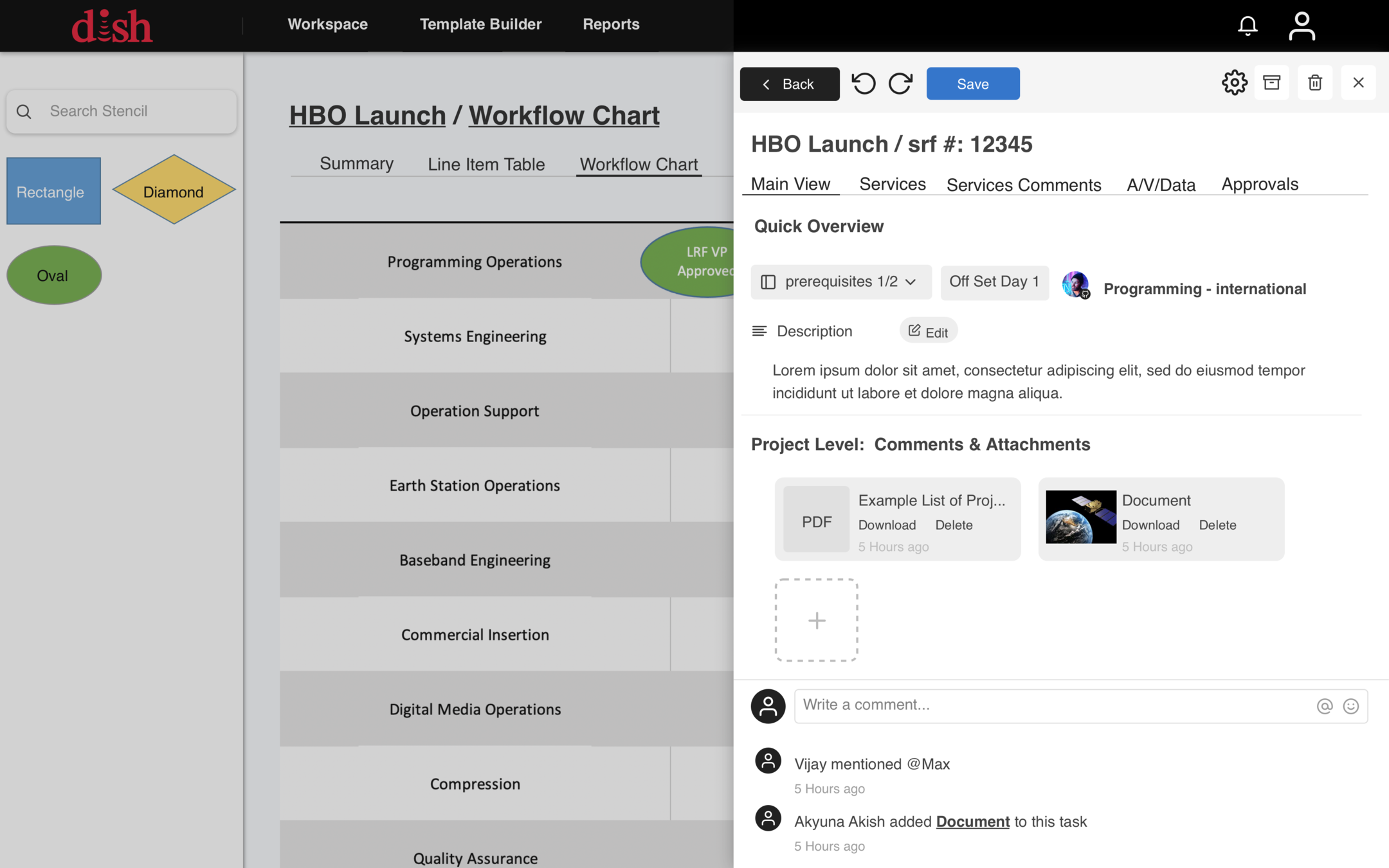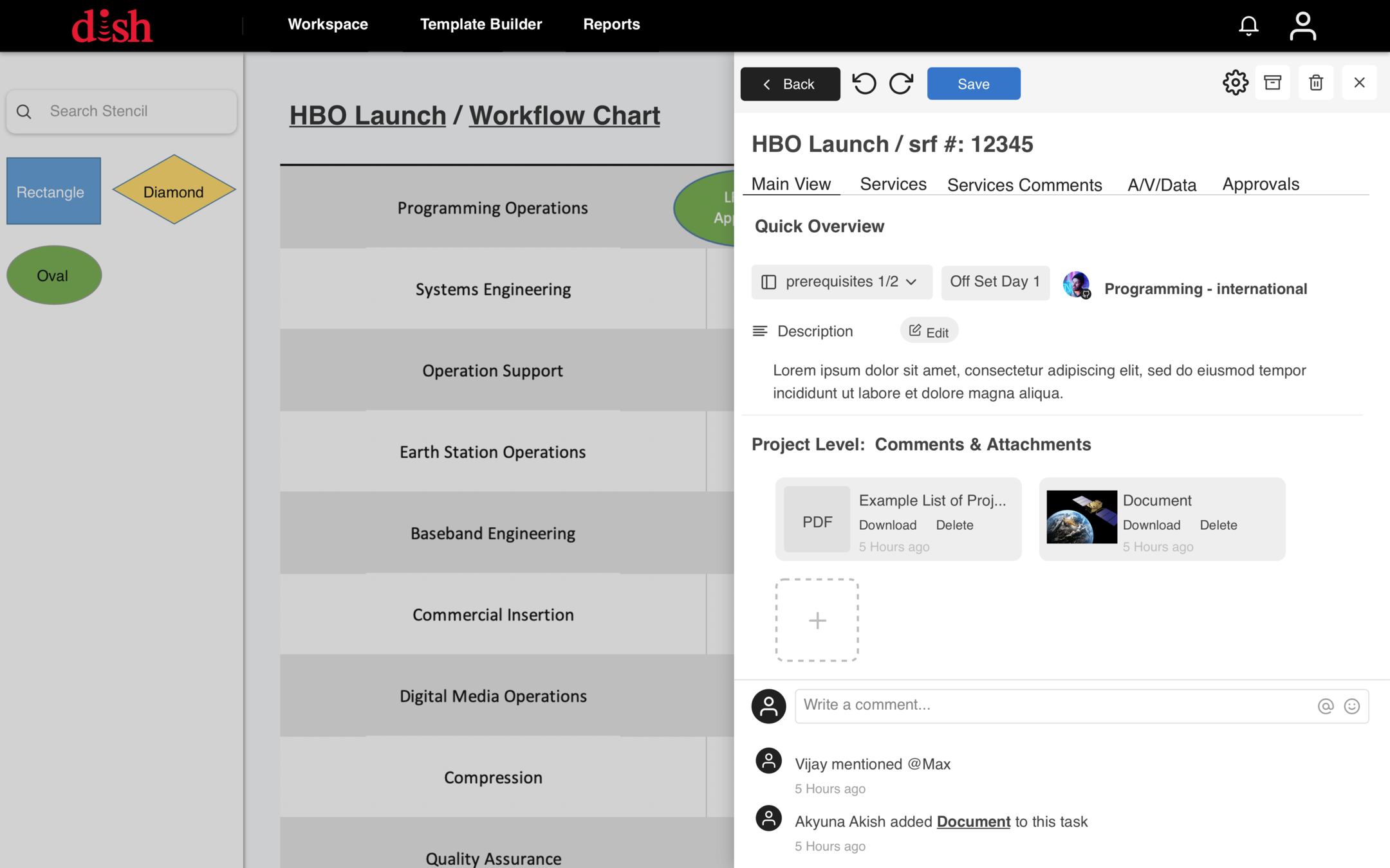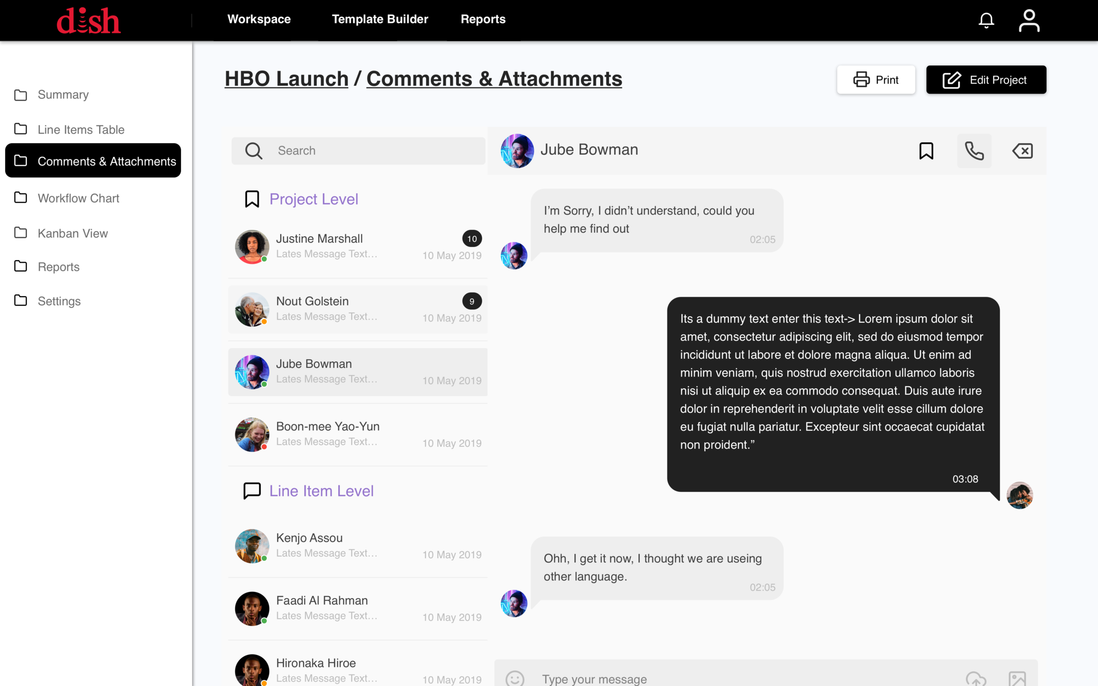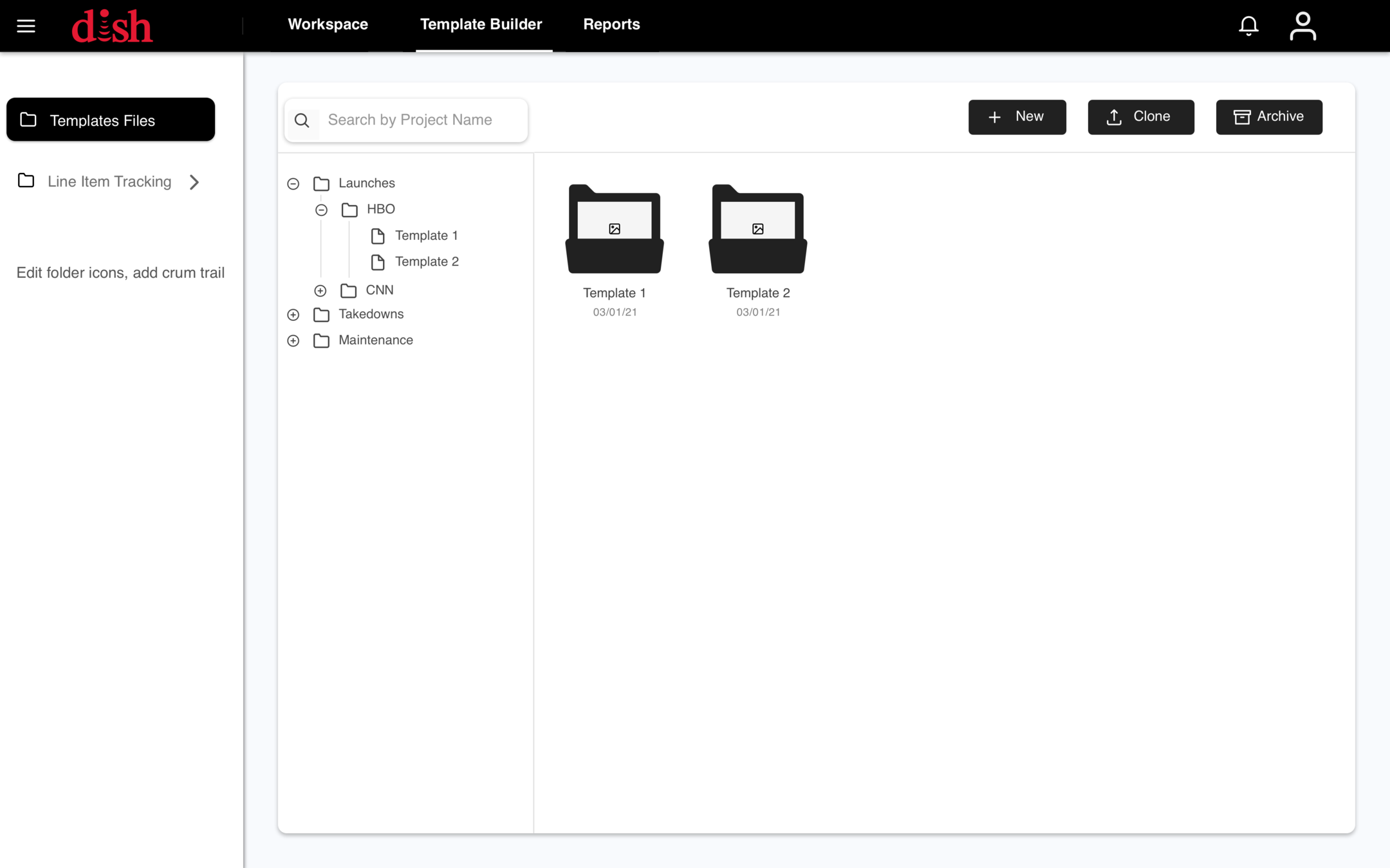 Projects created using a template or from scratch will be fully editable and customizable by admins and permitted Dish users.