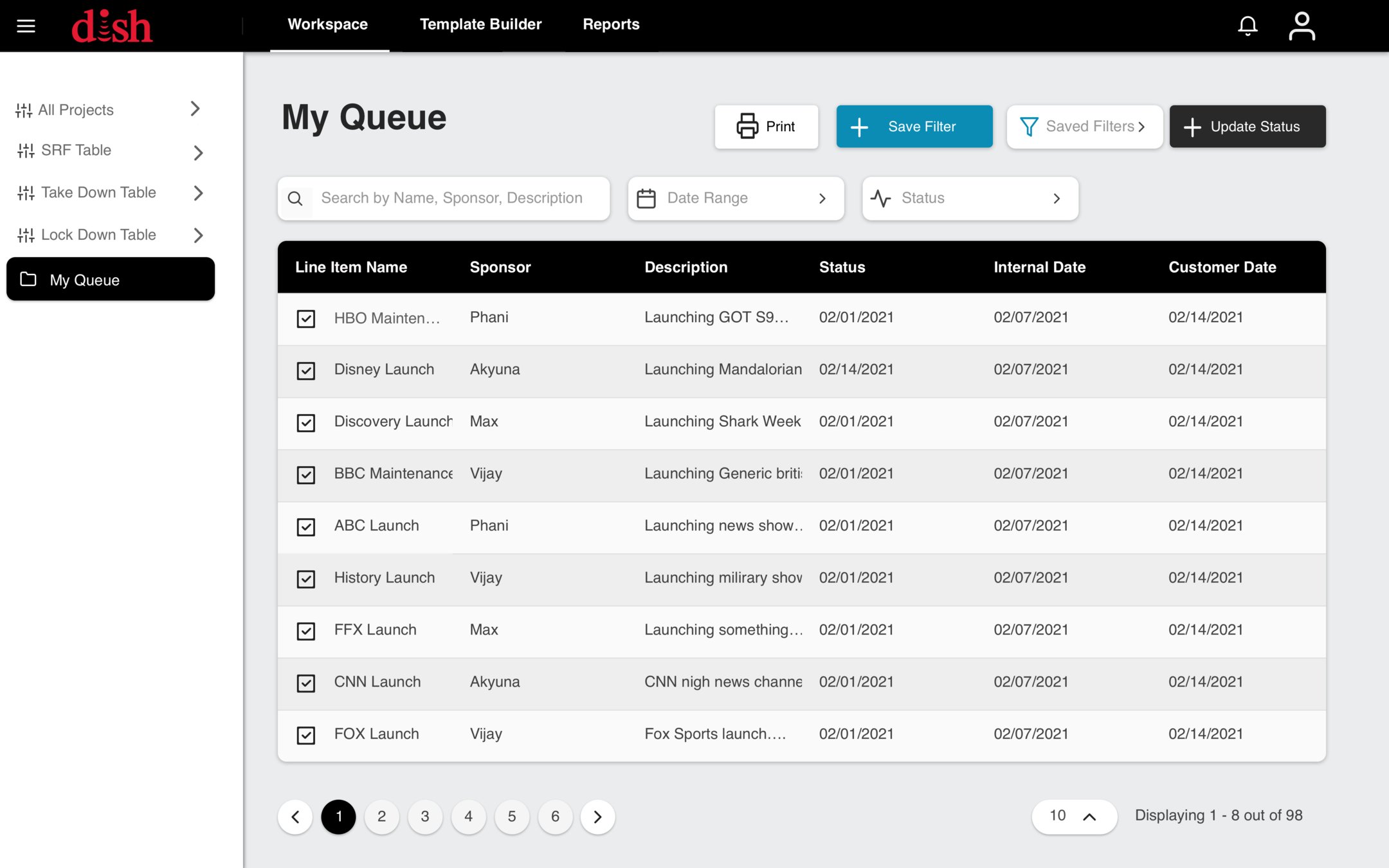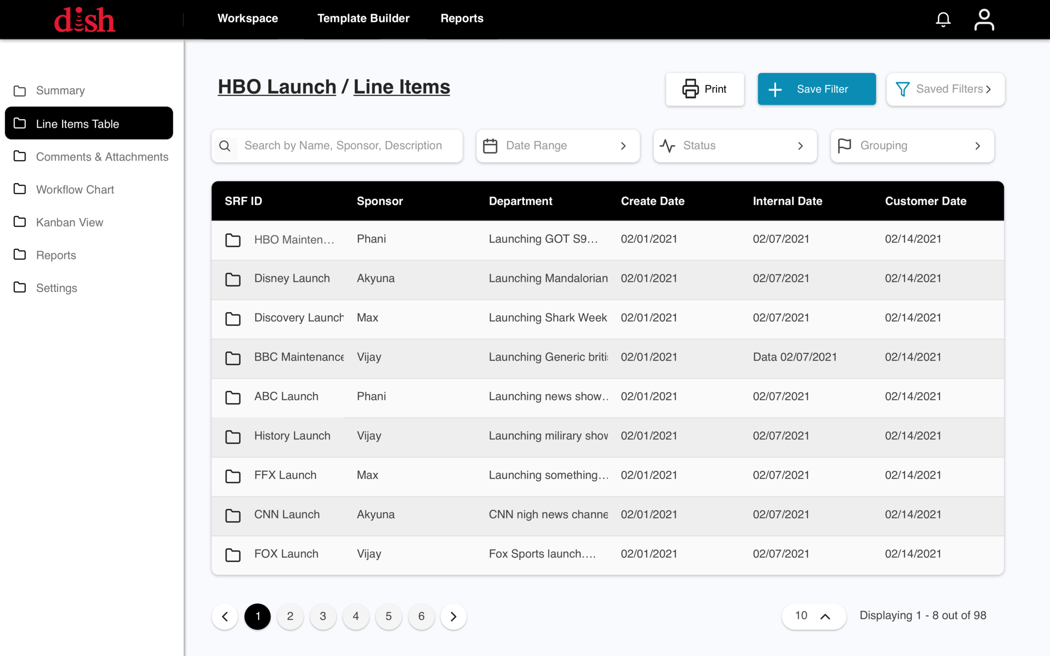 Dish/Dish Mexico users will see only see the Project/line-item data that is relevant to them. Users will be able to toggle back and forth between Dish/Dish Mexico data.
