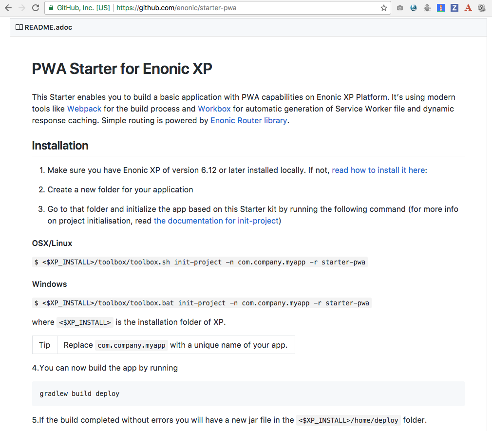 Check “Installation” section in https://github.com/enonic/starter-pwa