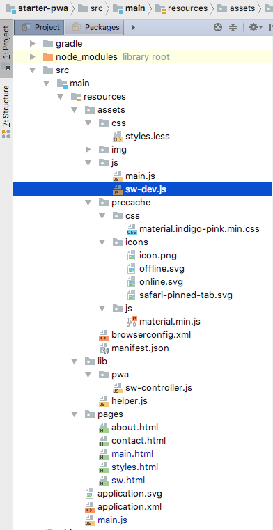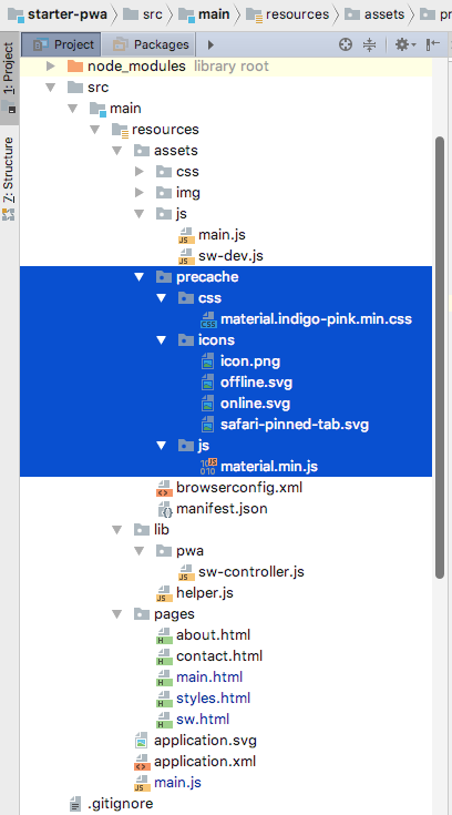1) If the asset is not under /assets/precache/, you will have to specify that it must be cached (sw-dev.js)