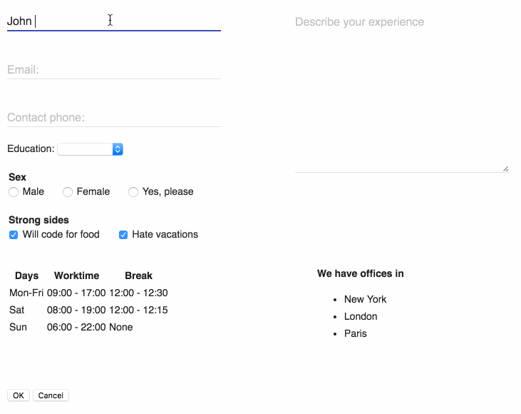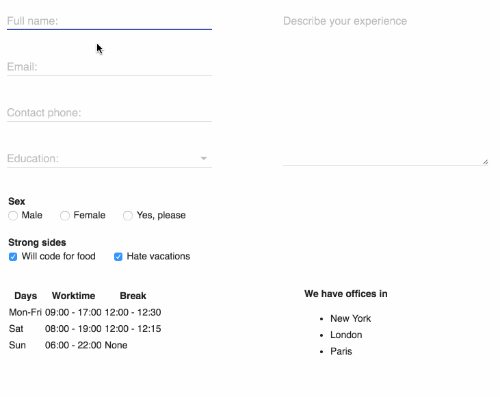 <input type="radio" id="list-option-3" name="sex" value="notsure" /> Yes, please