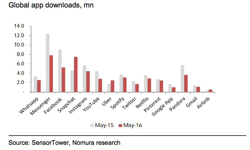 "In just one year from May 2015 app downloads in the US declined more than 20%"