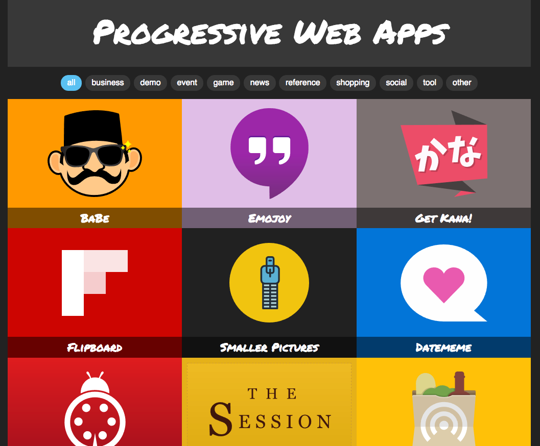 Searchable via search engines as a regular web site but identifiable as an application