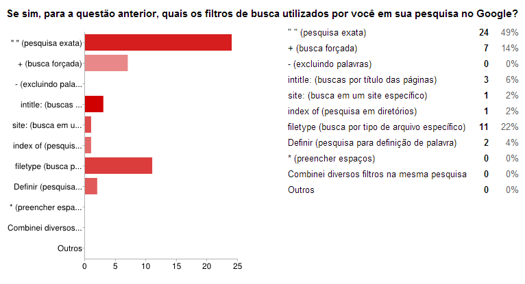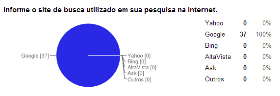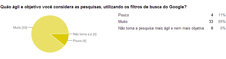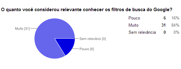 Ao final da pesquisa na aula, demonstrou-se a supremacia do Google como site de busca e ausência de conhecimento dos filtros de busca e em como realizar pesquisas com técnicas avançadas.