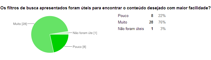 Os filtros se mostraram facilitadores na busca de conteúdo.