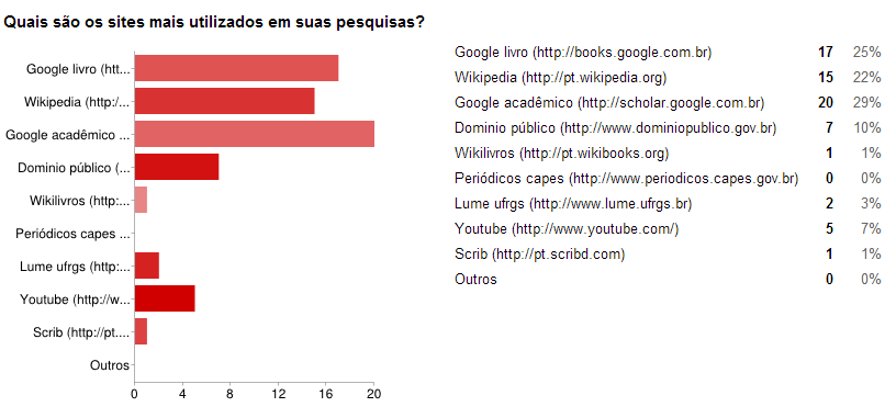 Sites preferidos para as pesquisas.