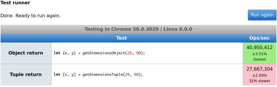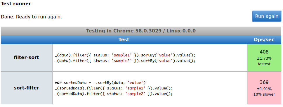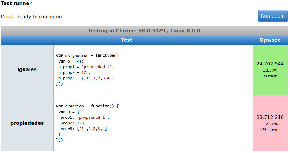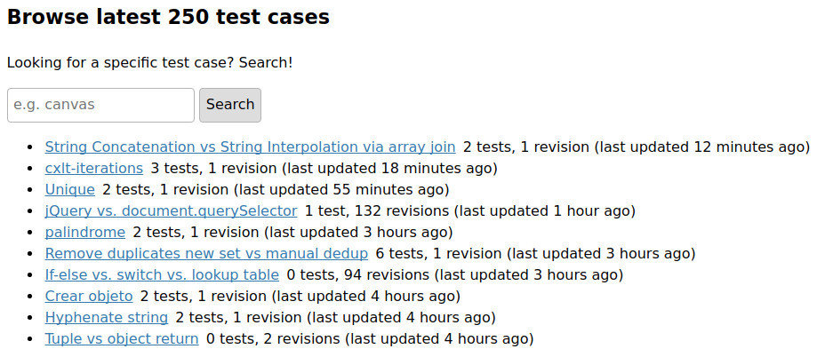 jsPerf aims to provide an easy way to create and share test cases, comparing the performance of different JavaScript snippets by running benchmarks.