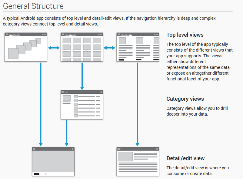 La documentación oficial de Android establece una categorización en tres niveles jerárquicos