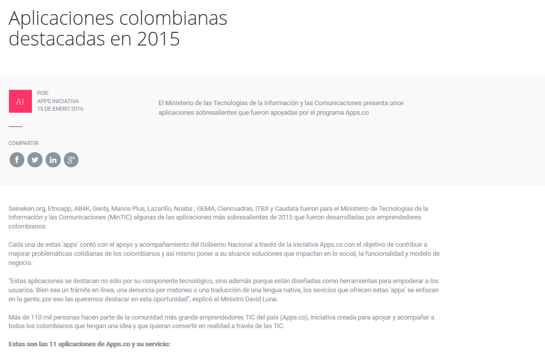 El plan gubernamental Vive Digital 2014-2018 busca "Ser líder mundial en el desarrollo de aplicaciones sociales"