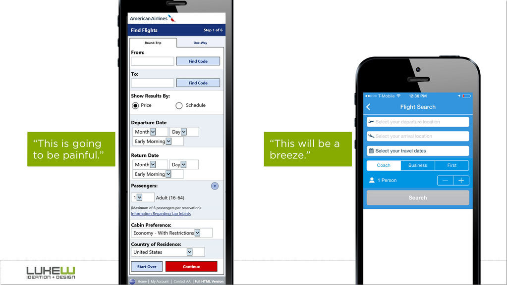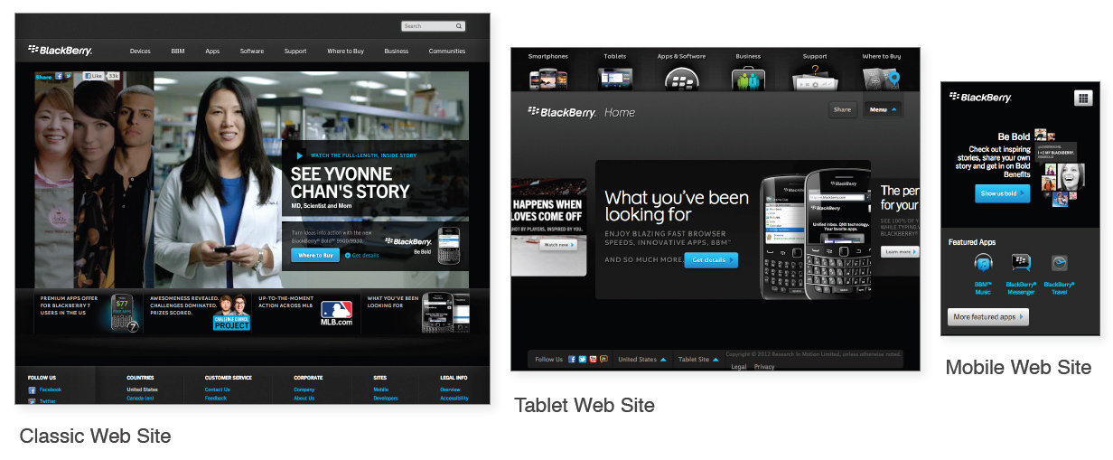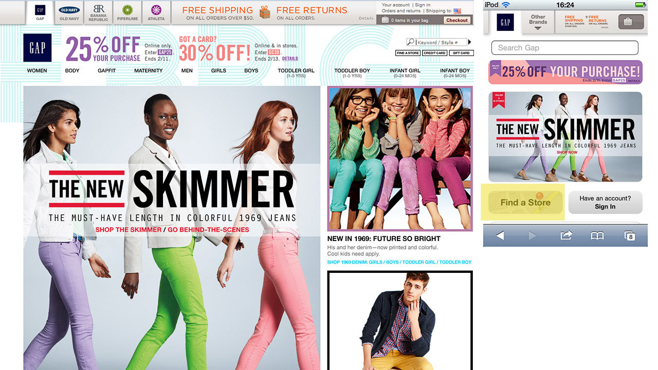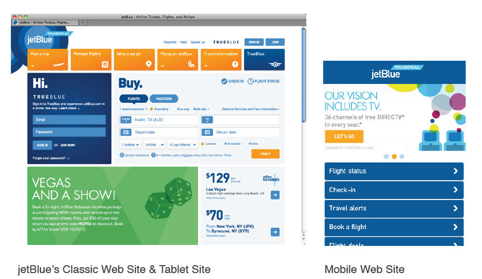 Buenas experiencias móviles requieren un diseño diferenciado del que es necesario para satisfacer usarios de PC de escritorio. Dos diseños, dos sitios, y enlaces cruzados para que todo funcione.