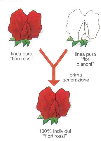 Quando Mendel incrociava ceppi puri dal fiore rosso con ceppi puri dal fiore bianco, otteneva sempre piante con i fiori rossi. Quindi le due varianti non si fondevano per formarne una nuova ma una prevaleva su un'altra.