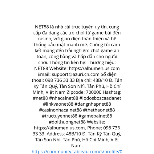 Website: https://albumen.us.com. NET88 là nhà cái trực tuyến uy tín, cung cấp đa dạng các trò chơi từ game bài đến casino, với giao diện thân thiện và hệ thống bảo mật mạnh mẽ. Chúng tôi cam kết mang đến trải nghiệm chơi game an toàn, công bằng và hấ