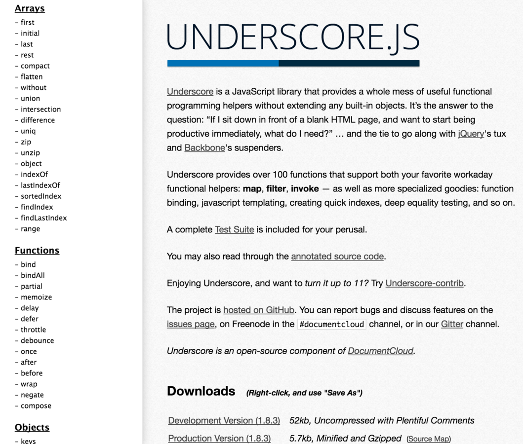 }Underscore is just an object that has a bunch of named functions that we can call.