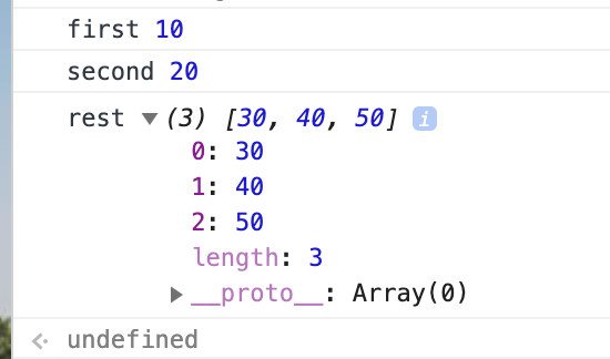 console.log('rest', rest)const [first = 'defaul first', second = 'default second'] = []