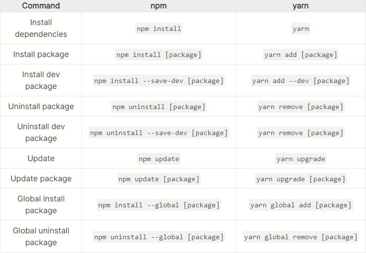 npm install --save [PACKAGE_NAME]npm install --save-dev [PACKAGE_NAME]