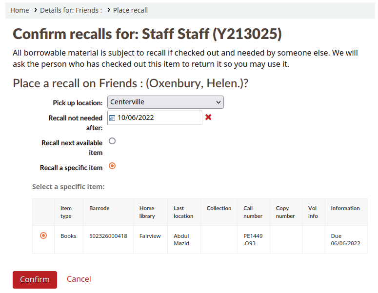 - Navigate to the patron's detail page