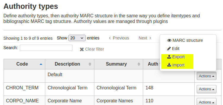 - Click 'Actions' > 'Import'