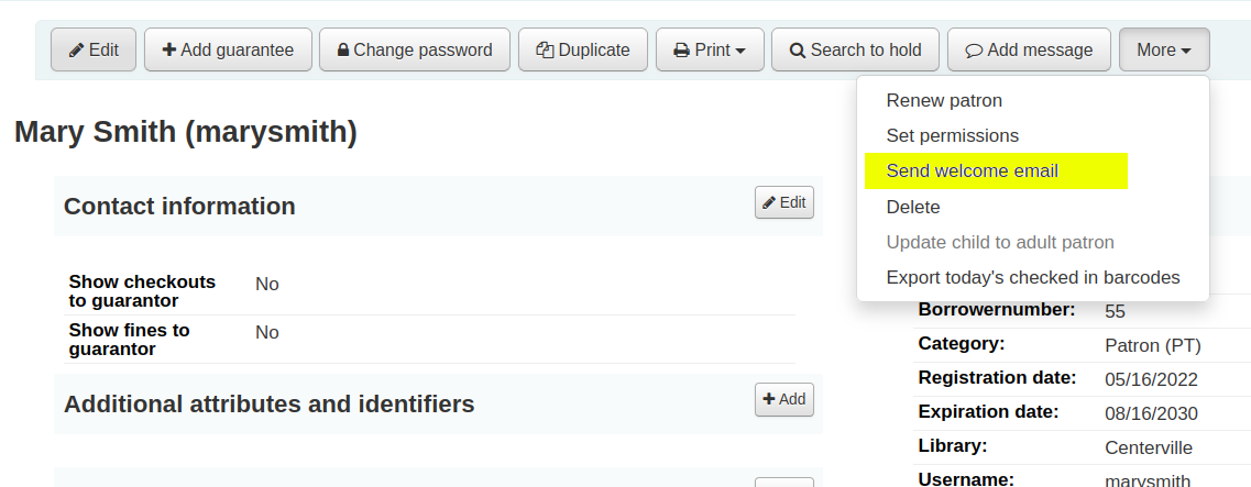 - This will queue an email to send to the patron