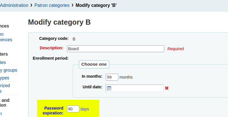 Introduce password expiration to patron categories