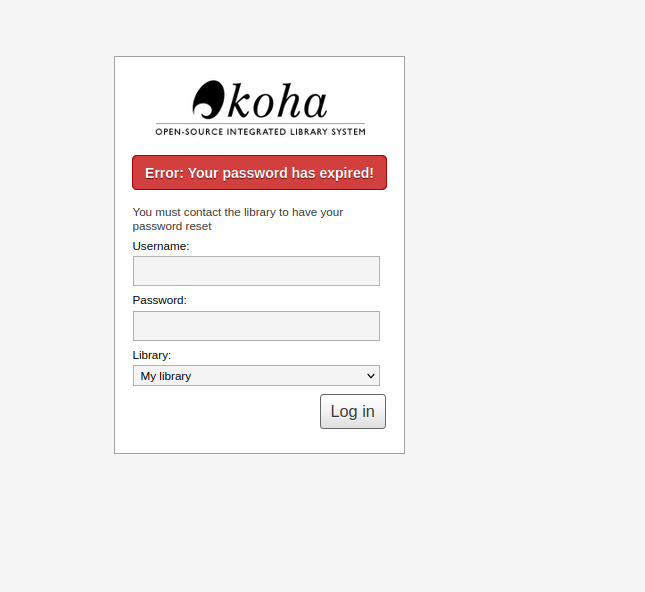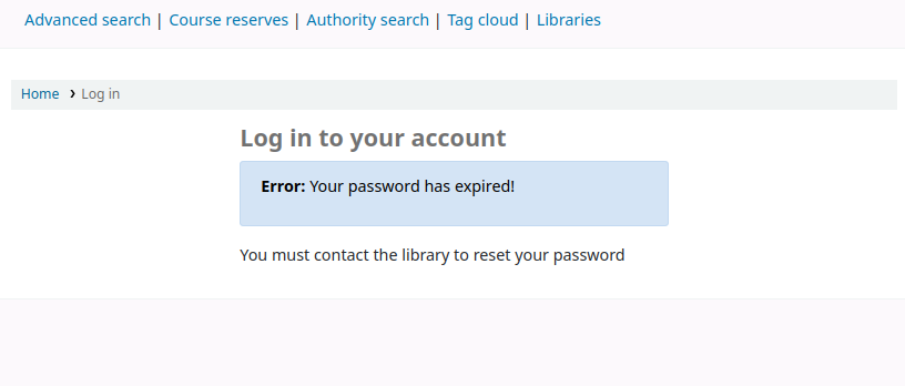 Upon attempting to log into the OPAC or staff client the patron will see a password expiry error