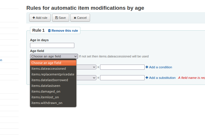 - The "Automatic item modifications by age" tool enables libraries to modify items when they are X days beyond being added to the catalogue.