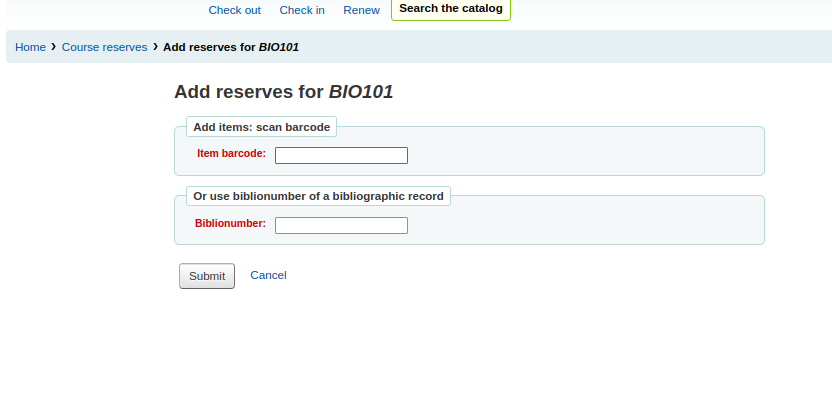 - Allow bibs to be added to course without items