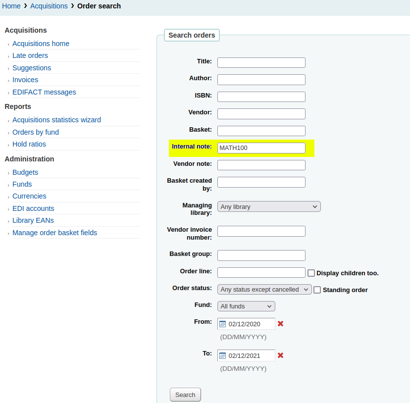 - Make note fields from orders searchable