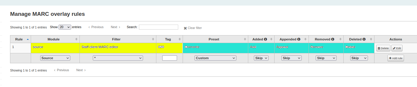 - Add: Add an entirely new tag in my overlay, if that tag did NOT already exist in the record.