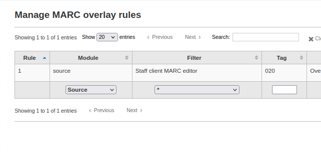 1. Go to: 'Administration' > 'Catalog' > 'Record overlay rules'
