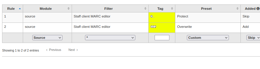 - Source: Rules apply based on which Koha tool the record is being edited/imported in.