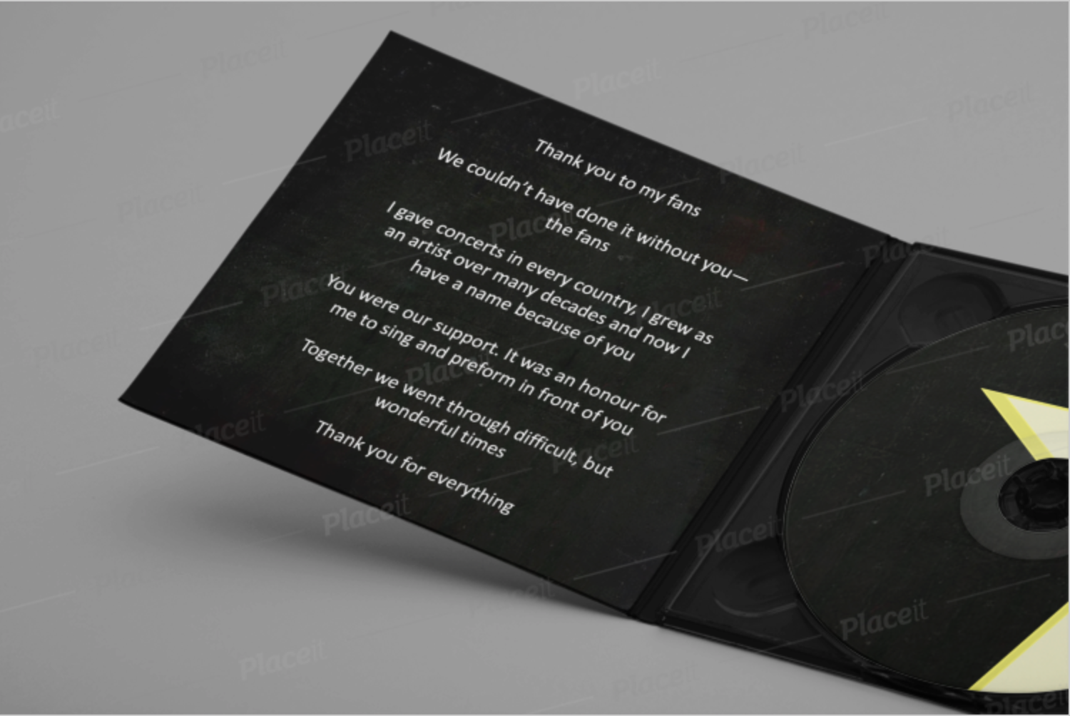 The photo on the digipack needs to make the audience be interested in opening and listening to the CD. Furthermore, as this is the last digipack, I decided to add a special message on the inside of the digipack. This will help to improve customer loyalty.