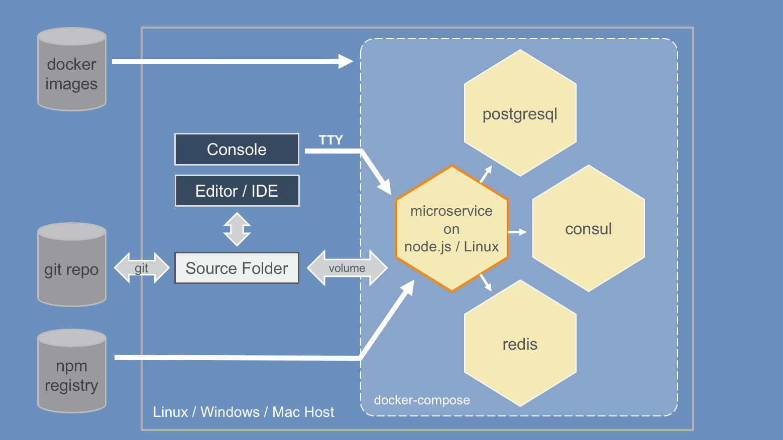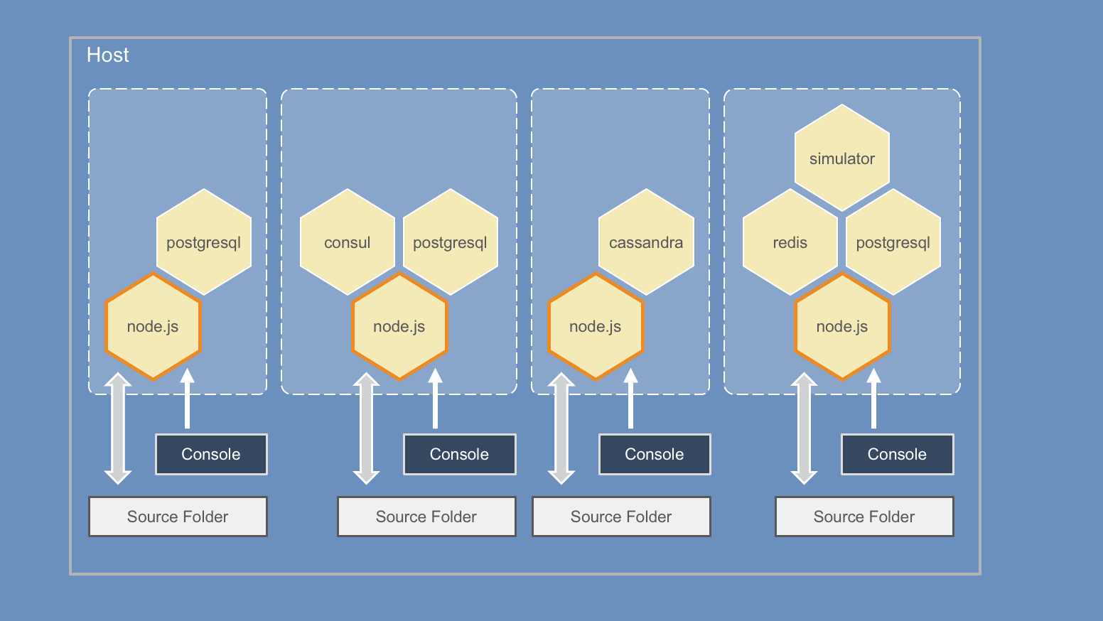 Bring up containers which form a consistent environment for development and test
