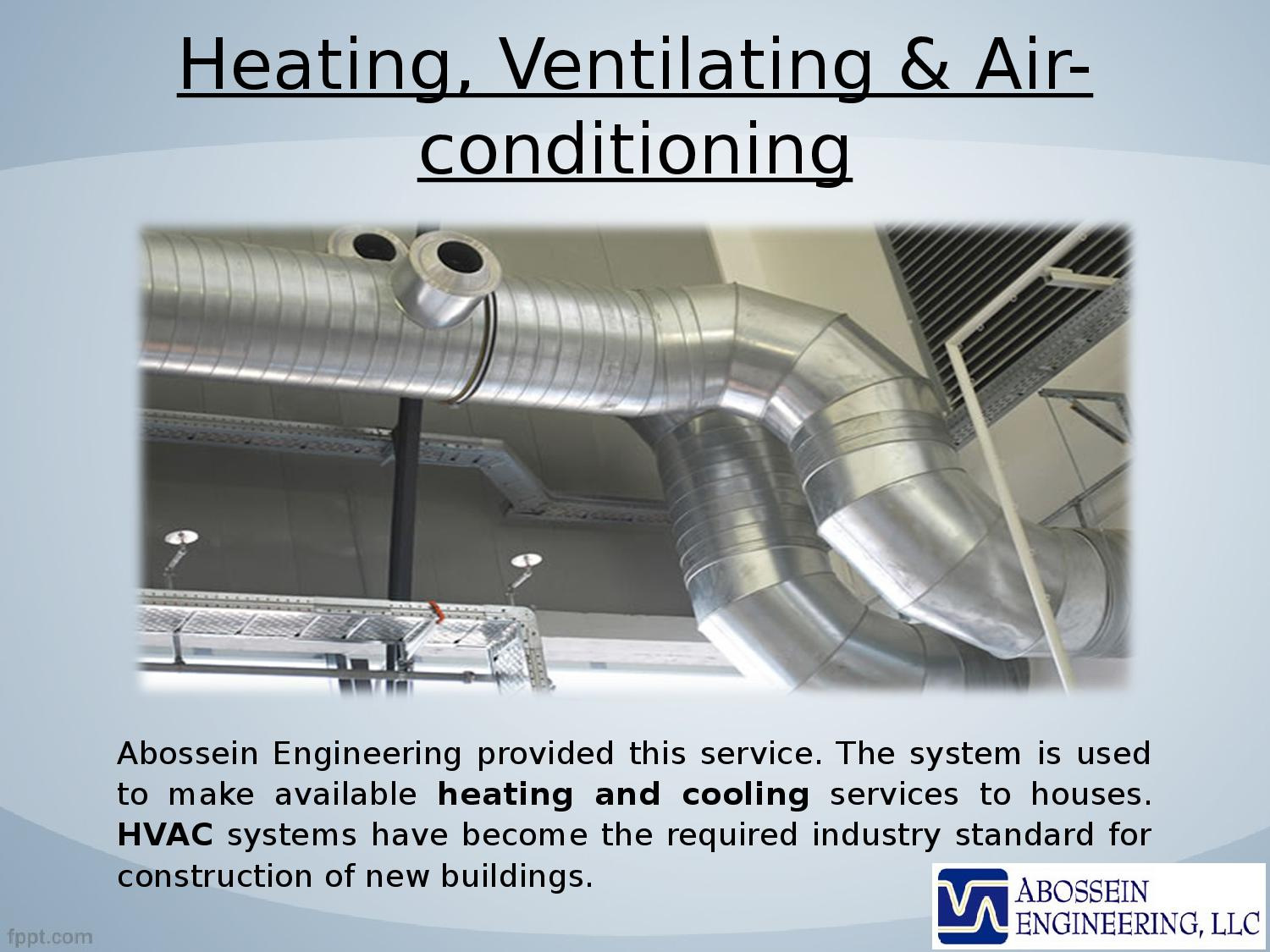 Alex Abossein is president of Abossein Engineering, Our mechanical engineering services include: heating, ventilating & air-conditioning, hydronic heating.