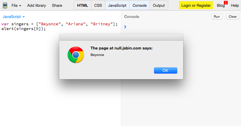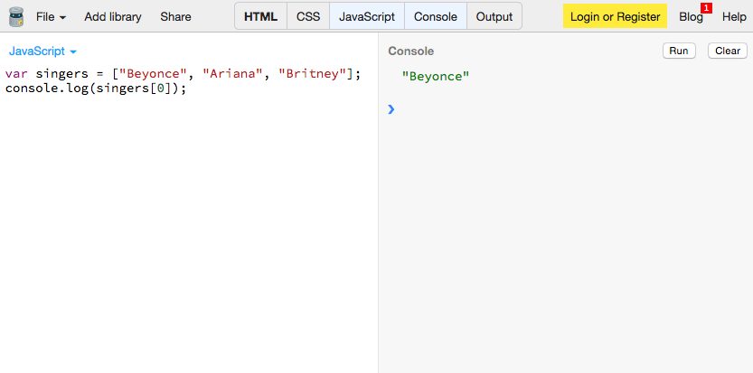 var singers = ['Beyonce', 'Ariana', 'Britney'];0