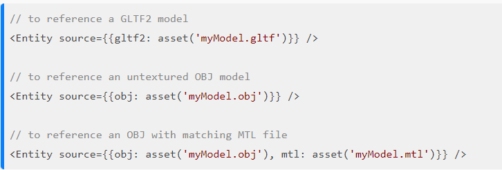React 360 applications are not restricted to 2D panels in space – you can also bring in 3D elements. Pre-built objects that have been created in 3D modeling or sculpting software can be brought into your application.