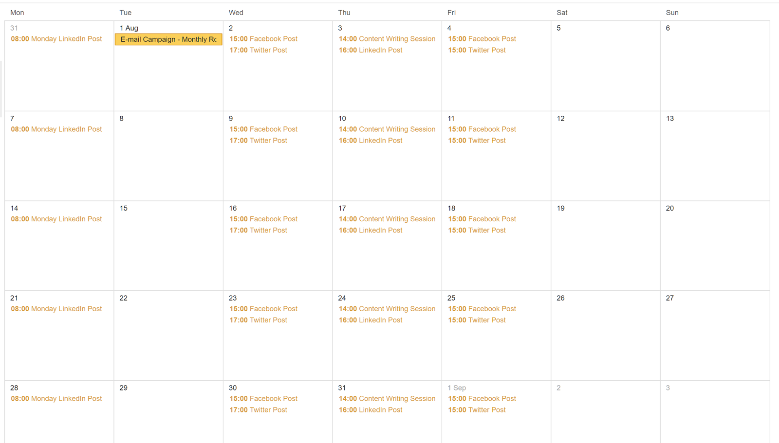 2. When content will be published to the website, each specific social media account, and via e-mail.