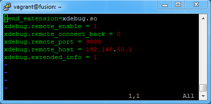 - sudo vi /etc/php5/mods-available/xdebug.ini