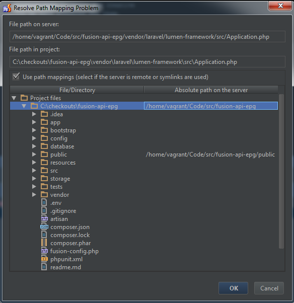 In this case we map to: /home/vagrant/Code/src/fusion-api-epg