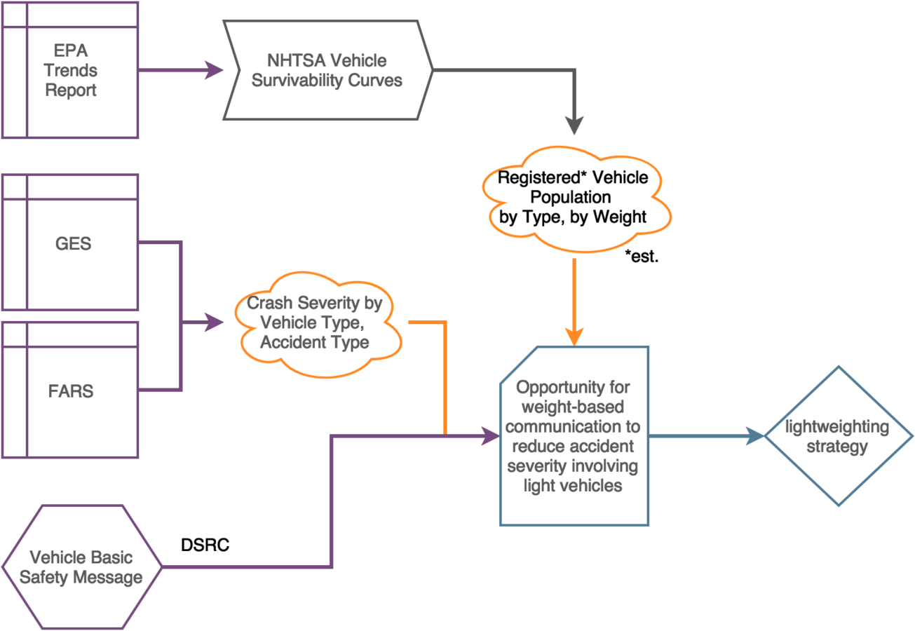 - Reducing vehicle weight is an opportunity to improve fuel economy, maintain performance, and reduce total accident energy