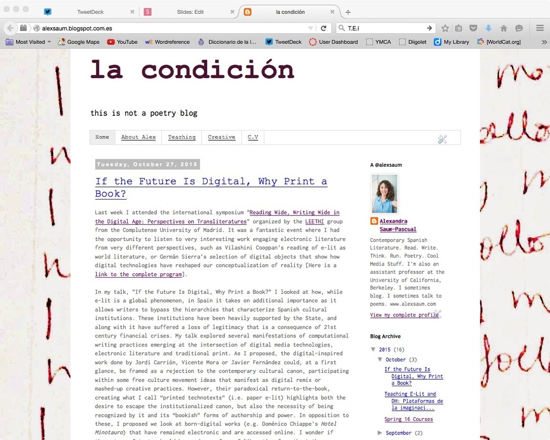 “e-lit, refers to works with important literary aspects that take advantage of the capabilities and contexts provided by the stand-alone or networked computer” (ELO)