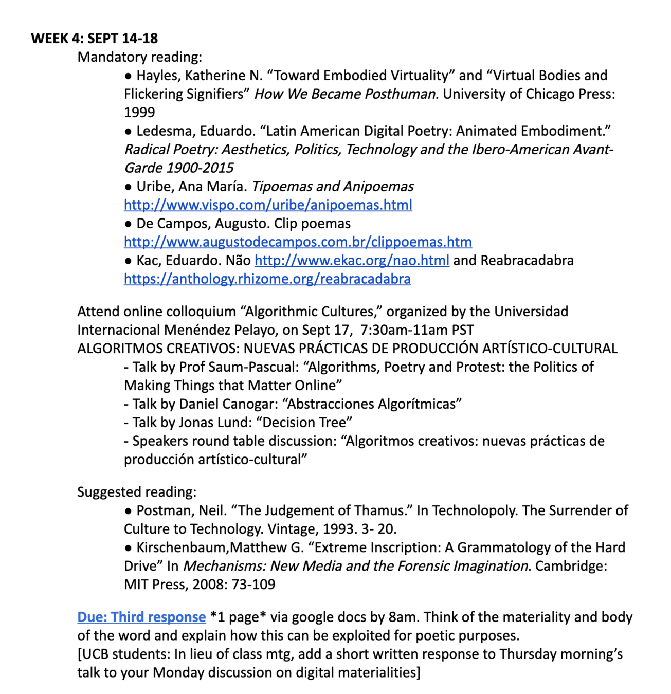Hispanic Influences and Digital Theories (Grad course)