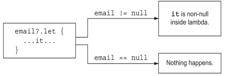 if (s != null) s.length else 0Once you perform the comparison, the compiler remembers that and treats the value as non-nullable in the scope where the check has been performed.
