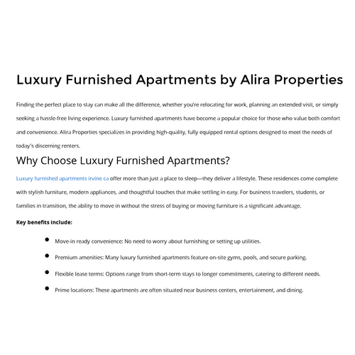 Alira Properties provides luxury furnished apartments in Irvine, CA, executive corporate housing in Newport Beach, and stylish houses for rent in Costa Mesa.
