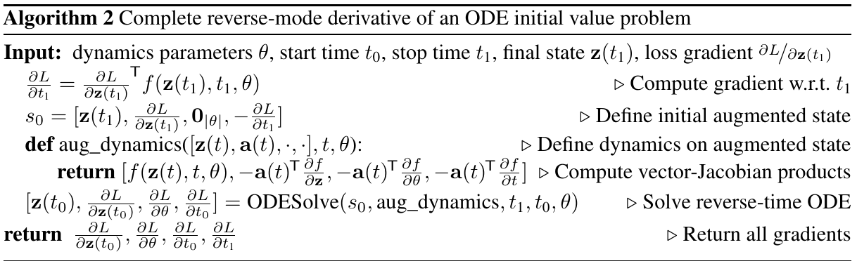 $$\frac{\text{d}a(t)}{\text{d}t} = - a(t)^T \frac{\partial \mathcal{F}(z(t),t,\theta)}{\partial z}.$$