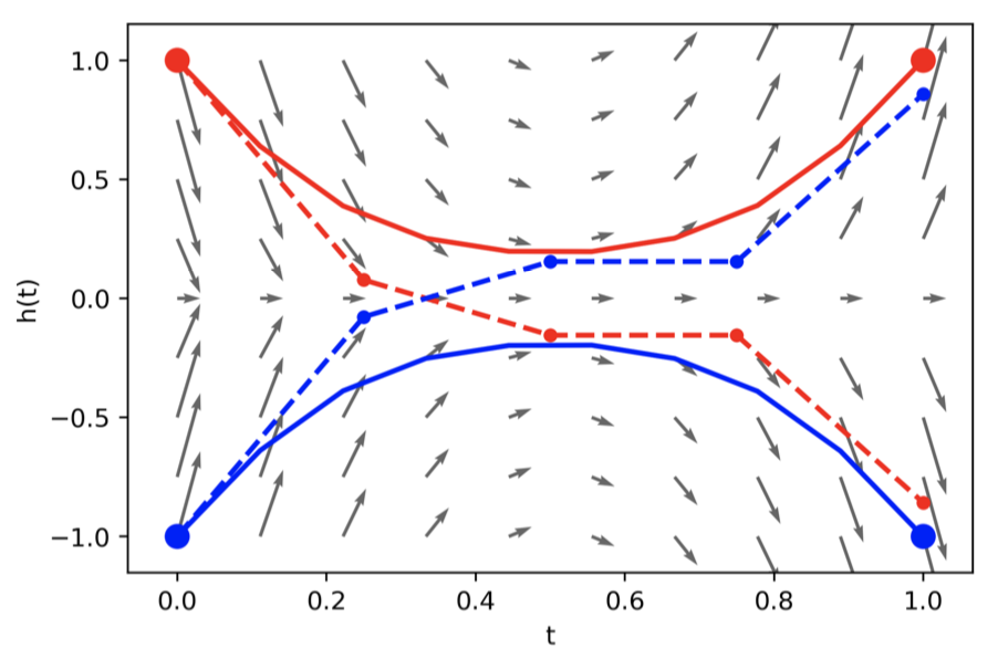 Chen, Tian Qi, Yulia Rubanova, Jesse Bettencourt, and David K. Duvenaud. "Neural ordinary differential equations." In Advances in neural information processing systems, pp. 6571-6583. 2018.