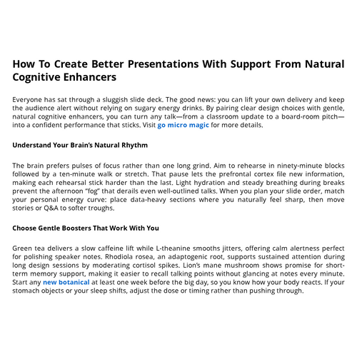 How To Create Better Presentations With Support From Natural Cognitive Enhancers