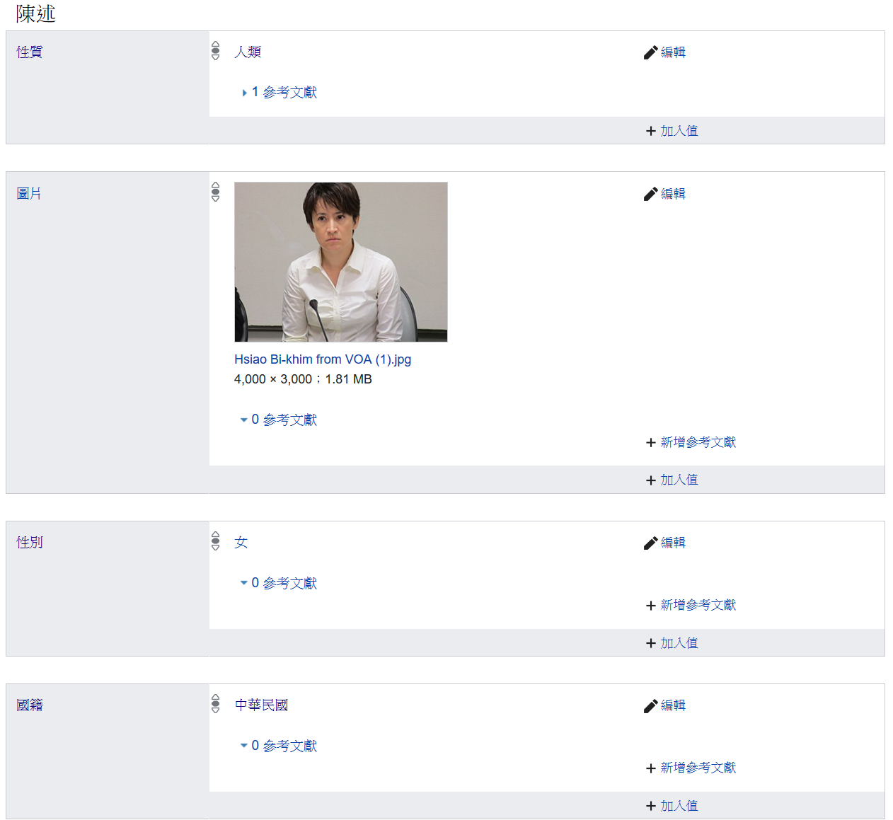 職業(P106):所有立委、官員的職業都是政治人物(Q82955)